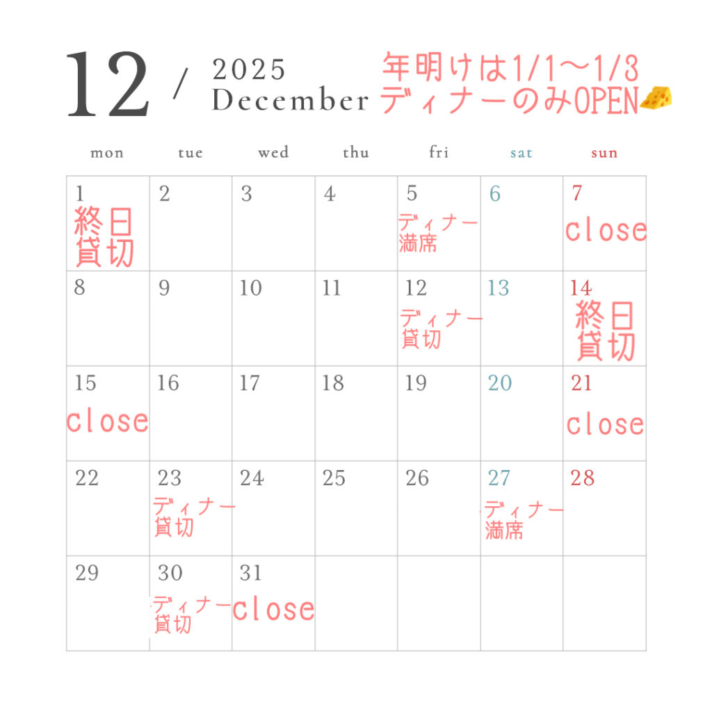 Kei’sは忘年会シーズンで貸切ご予約が多くなっております🧀